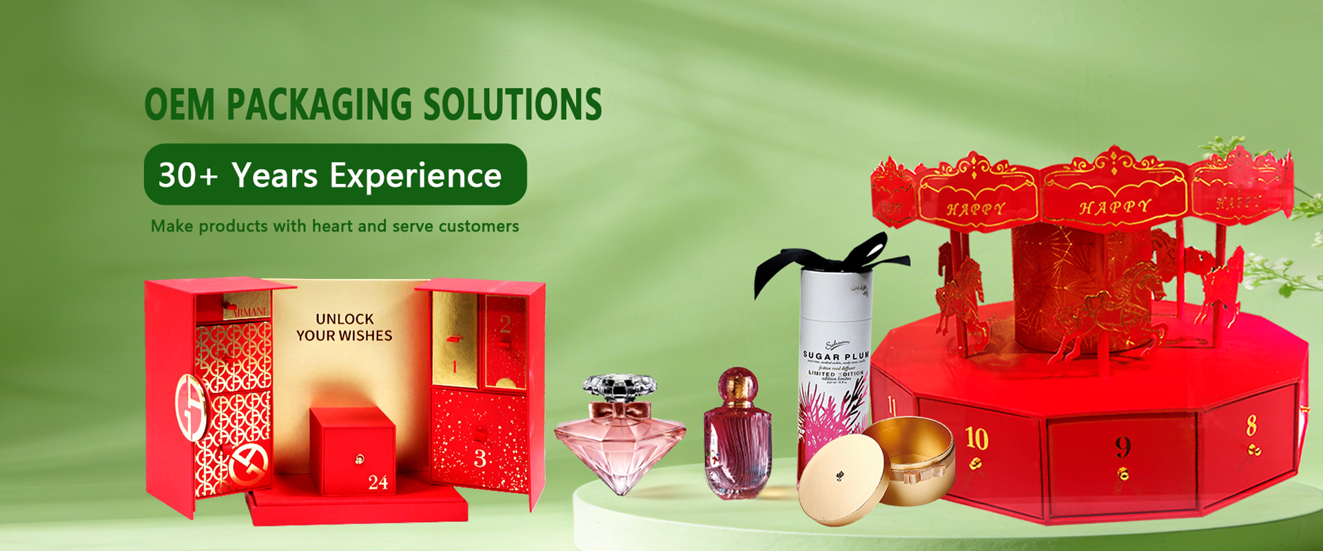 The company mainly deals with glass bottles and customized packaging for cosmetics, alcohol, food, medicine, and electronics. It covers all categories of glass bottles. With advanced technology and lightweight design, it meets the global trend of green packaging. The supporting customized packaging includes categories such as cosmetic boxes, wine boxes, and food gift boxes. Relying on automated production equipment and a professional team, it ensures both mass - production efficiency and high - end handicraft techniques, fully meeting the personalized needs of global customers.